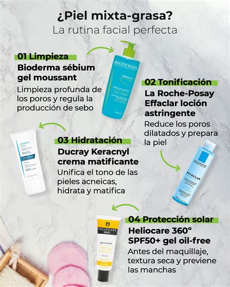 Aquí hay algunos productos recomendados para el cuidado de la piel mixta con tendencia al acné:
