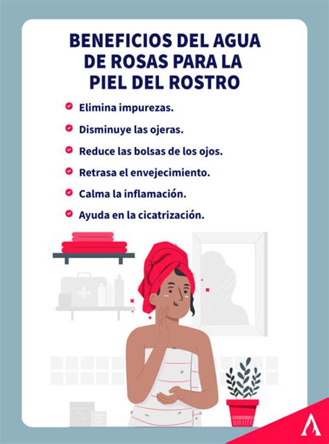 Aquí hay una tabla con resumen de los beneficios del agua de rosas: