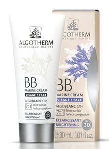 La BB crème marine SPF30 ALGOTHERM es un soin 7 en 1 que va agir sur le teint, les taches et imperfections, la protection de la peau et sa beauté en un seul geste ! Composée du complexe Algoblanc CX+, dérivé de vitamine C, et d’extrait de fleur de cerisier, elle va aider à lutter contre l’apparition des signes de l’âge et lisser les rides, purifier la peau et éclaircir le teint.