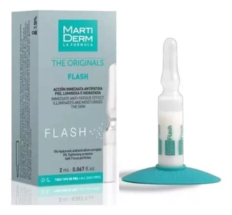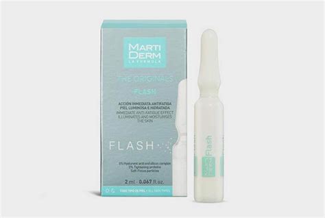La fórmula de las ampollas flash de Martiderm está diseñada para eliminar los signos de la fatiga, hidratar y reafirmar. Enriquecida con ácido hialurónico y silicio, que aportan proteínas tensoras de origen vegetal y disminuyen las rugosidades y arrugas creando una película elástica sobre la piel con efecto remodelador.