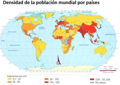 Mapa de densidad de población mundial