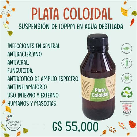 - Plata iónica: Contiene iones de plata en solución, pero no partículas coloidales. Su efectividad es diferente y puede reaccionar con compuestos en el cuerpo.