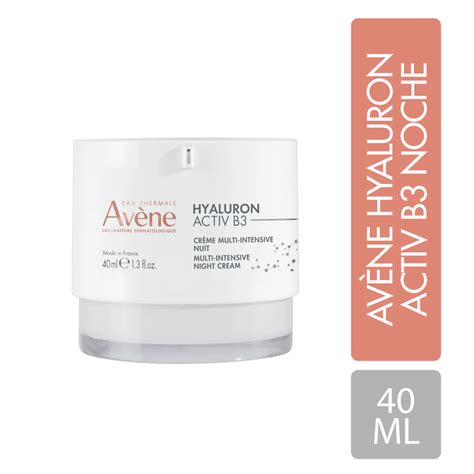 La crema de noche multi-intensiva Hyaluron Activ B3 de Avène es un producto reparador integral diseñado para actuar sobre las causas del envejecimiento cutáneo. Su fórmula avanzada combina cuatro activos clave: Retinal, Niacinamida, Ácido Hialurónico y Haritaki.