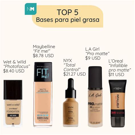 A continuación, se presenta una tabla con algunas bases de maquillaje recomendadas para pieles grasas y con acné, junto con sus características principales: