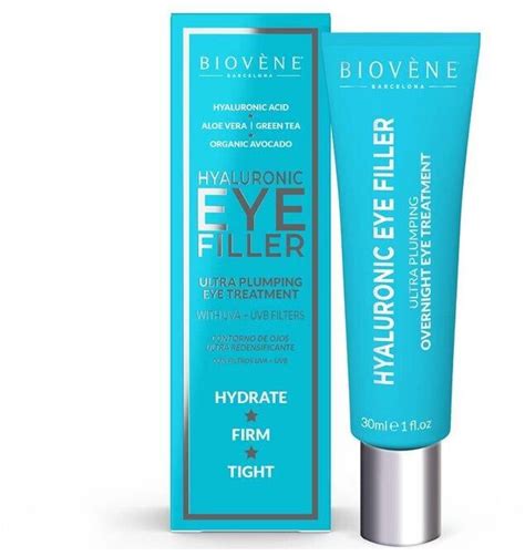 | Biovène Hyaluronic Eye Filler | Ácido Hialurónico, Aguacate Orgánico, Aloe Vera, Té Verde | Hidratación profunda, reducción de arrugas, mejora la barrera protectora de la piel |
