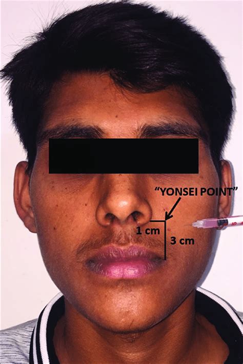 Técnica de "Yonsei point" para la localización del punto de aplicación en la hiperactividad del músculo elevador del labio superior.