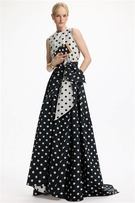 Reinventar fórmulas que ya funcionan no es sencillo, y por eso tocar los lunares de Carolina Herrera es una tarea compleja. ¿Cómo se puede perfeccionar lo que ya se sabe redondo y que consigue poner de acuerdo al público? La respuesta no es inmediata, y aunque la modificación de tamaños (en blanco y negro, por supuesto) siempre está ahí, hay otro camino menos evidente y más efectista: hacerlos convivir con corazones, cuando no sustituirlos.