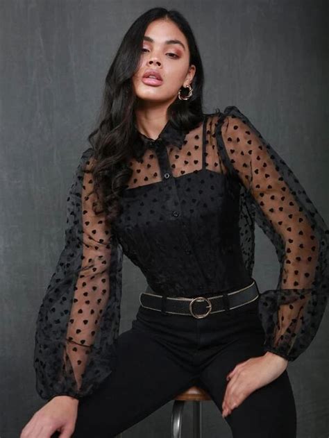 Tipos de Camisas Negras Transparentes con Lunares