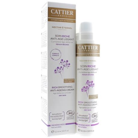 Cattier Nectar Éternel Soin Riche Anti Âge Lissant 50ml es una crema antiedad especialmente formulada para responder a las necesidades de las pieles maduras y secas. Este tratamiento rico y nutritivo ayuda a combatir los signos visibles del envejecimiento como las arrugas, la pérdida de firmeza y elasticidad de la piel.