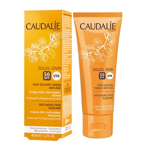 Caudalie Soleil Divin Tratamiento Solar Antiedad con protección UVA FPS50+ protege el ADN celular, antioxidante, hidratación intensa. Especialmente formulada para las primeras exposiciones solares y para las radiaciones extremas, esta crema permite broncearse con una alta protección: amplio espectro UVA/UVB, antiedad.
