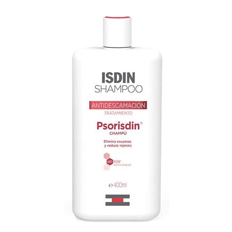 El champú Psorisdin de ISDIN está especialmente formulado para personas que sufren de psoriasis en el cuero cabelludo. Este champú antidescamación previene y regula la descamación del cuero cabelludo producida por la psoriasis, a la vez que alivia los picores y la irritación. Con su fórmula única, este champú no solo elimina las escamas, sino que también reduce las rojeces y alivia el picor asociado con la descamación.