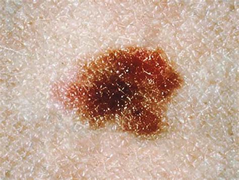 - Melanoma lentigo maligno: Se desarrolla en áreas de la piel que han estado expuestas al sol durante mucho tiempo, como la cara, los brazos y las manos. Aparece como una mancha plana y marrón, con bordes irregulares.
