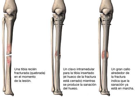 - Clavado Intramedular: Se inserta una varilla de metal en el canal de la tibia para mantenerla en posición.