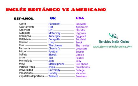 - Vocabulario: Una de las diferencias más notables entre el inglés británico y el americano es el vocabulario. Existen decenas de palabras que cambian de una variante a otra.