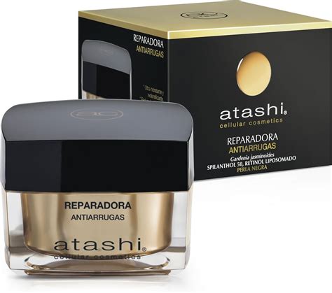 - Crema Reparadora Antiarrugas de Atashi: Con retinol (vitamina A), vitamina E, perla negra y spilanthol 50, conforma una fórmula que reduce la profundidad de las arrugas tanto de forma inmediata por el bótox vegano como a largo tiempo por la acción estimulante de la producción de colágeno del retinol, capaz de reducirlas hasta en un 16%.