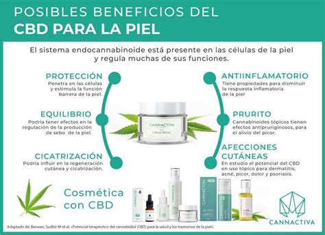 Potenciales beneficios del CBD para la piel. Adaptado de: Baswan, Sudhir M et al. «Potencial terapéutico del cannabidiol (CBD) para la salud y los trastornos de la piel»