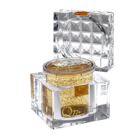 - Gold Regeneration Cream de Q77+: Con partículas de oro de 24K, actúa frente a las arrugas y la falta de firmeza, hidrata, reduce la aparición de manchas, mejora la circulación.