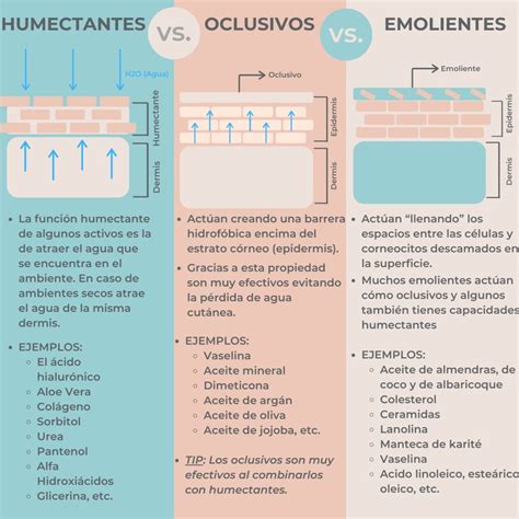 Los emolientes son como los guardianes de tu piel, no proporcionan hidratación directa, pero siempre están en acción. Estos ingredientes actúan como una capa protectora que mantiene tu piel suave y tersa. Entre los favoritos se encuentran las ceramidas, el escualano y el ácido esteárico.