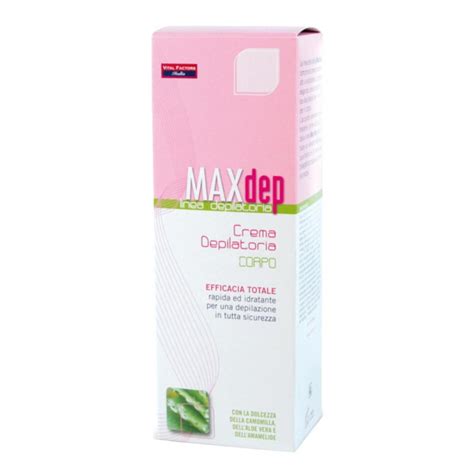 La crema depilatoria MAX DEP destaca por su formulación tecnológicamente avanzada, rica en principios activos con acción protectora, descongestionante y emoliente. La sinergia del Aloe, hidratante y calmante, y el extracto de Manzanilla, calmante y antienrojecimiento, hacen de esta crema depilatoria un innovador cosmético de fiabilidad segura y tolerabilidad cutánea. Está indicada también para pieles sensibles y delicadas porque no irrita la piel y la deja excepcionalmente suave y sedosa.