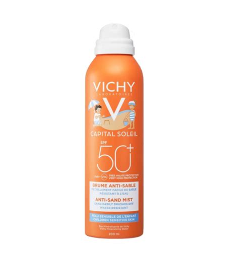 La Bruma Protectora Solar Anti-Arena para Niños SPF 50+ de Vichy es un protector solar diseñado especialmente para la piel sensible de los niños. Bruma solar con la innovación de la tecnología anti-arena para niños. La arena se desprende fácilmente de la piel manteniendo una alta protección.