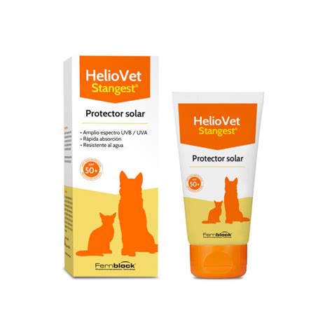 En Popet Mascotas recomendamos la gama Heliovet de Stangest, formulada específicamente para perros y gatos. El protector solar HelioVet de Stangest ofrece una protección muy alta (SPF50+) frente a los efectos nocivos del sol, incluyendo los rayos UVA y UVB, infrarrojos y luz visible. Formulado con Fernblock®, té verde, plancton y fitoesfingosina, activos naturales con acción fotoprotectora, antioxidante y reparadora. Stangest es una división de Cantabria Labs, compañía líder en prescripción dermatológica presente en más de 80 países.