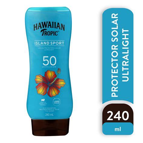 Los protectores solares Hawaiian Tropic ofrecen una protección de amplio espectro contra los rayos UVA y UVB. Loción de protección solar hidratante con factor de protección solar muy alto SPF50, protege la piel contra los rayos UVA y UVB.