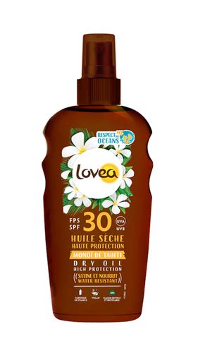 Con el Aceite seco Bronceador, lo importante no es broncearse rápidamente, sino broncearse bien. El aceite seco bronceador Lovea FPS 30 Alta Protección enriquecido con monoï de Tahití protege eficazmente contra los rayos UVA y UVB y proporciona un bronceado dorado, duradero y luminoso.