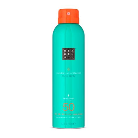 | Rituals The Ritual of Karma Leche Solar en Espray SPF 50 | 50 | Vitamina E, té blanco, flor de loto, complejo Hydra-Boost | Espray | Hidratante, no pegajosa, de absorción rápida |