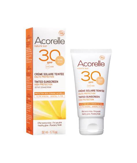 | Acorelle | Crema Solar Facial Color Gold SPF 30 | Protección UVA/UVB, tono dorado natural, acabado empolvado | Aceite de Karanja, Aceite de Argán, Agua Floral de Mango |