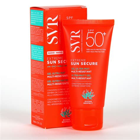 SVR Sun Secure Extreme SPF50+ Gel Ultra Mat 50 Ml es un protector solar de muy alta protección SPF50+, con una textura gel con acabado mate. Protege contra los rayos UVB/UVA, la luz visible y los infrarrojos. Su textura es muy ligera de gel-bálsamo, de rápida absorción y resiste al agua, al sudor y al roce para que estés siempre protegido.