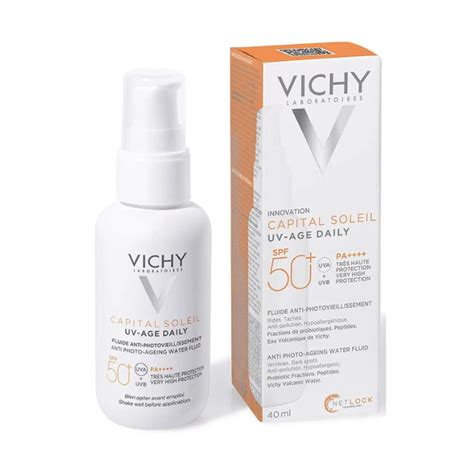 Vichy Capital Soleil UV-Age Daily SPF50+ ![]() | Líquido diseñado para pieles grasas o con tendencia acneica, con ácido salicílico y niacinamida para prevenir marcas UV, reducir imperfecciones hidratar y controlar el brillo. Es resistente al... | Protege contra rayos UV, reduce imperfecciones y brillo de la piel, para un aspecto más natural. | Antes de usar, asegúrate de agitarlo bien. Aplicar una cantidad generosa justo antes de exponerse al sol. |