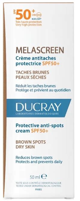 | Ducray Melascreen Crème Antitaches Protectrice SPF 50+ | SPF 50+ | Pieles secas e hiperpigmentadas | Antimanchas, antienvejecimiento | Fundente, invisible |