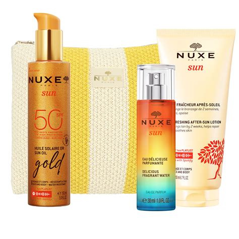 Nuxe ha desarrollado una gama dedicada llamada Nuxe Sun para ofrecer una protección completa para tu piel y tus cabellos. Nuxe ha elaborado una gama solar completa que se distingue por su formulación clean. Los cuidados solares Nuxe Sun están compuestos de tres filtros solares y dos ésteres no tóxicos para el ecosistema marino. Han sido rigurosamente testados en algas, corales y bacterias representativas de la vida marina.