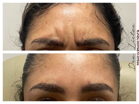 - Asimetría en el entrecejo: Si el Botox se inyecta de manera desigual entre los dos lados del entrecejo, uno puede relajarse más que el otro, resultando en una apariencia desequilibrada. Esto puede hacer que una ceja parezca más levantada en comparación con la otra.