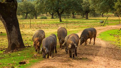 Los cerdos ibéricos se alimentan de bellotas en libertad.