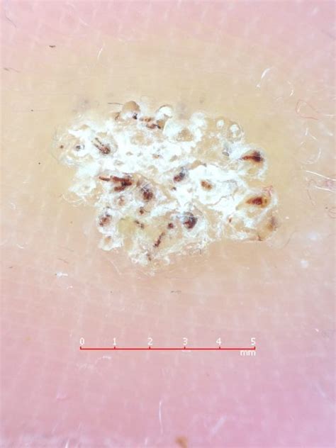 Dermatoscopia de una verruga plantar.