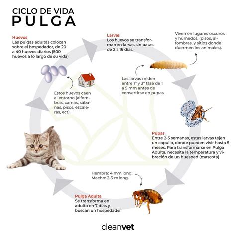 Las hembras ponen huevos que caen al suelo, formando larvas y pupas de las que saldrán nuevas pulgas. Es crucial tener en cuenta que la vida media de una pulga es de aproximadamente 50 días, y en ese tiempo puede llegar a poner hasta 2000 huevos. Si eliminamos las pulgas de nuestra mascota, evitaremos que estas sigan poniendo huevos y, por ende, que el ciclo se perpetúe.