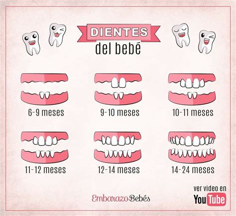 La erupción de los «dientes de leche» suele empezar por los incisivos centrales inferiores y, después, seguir con los incisivos centrales superiores, los incisivos laterales superiores, los incisivos laterales inferiores, las primeras muelas de leche (primer molar), los caninos (colmillos) y, por último, las segundas muelas de leche (segundo molar).