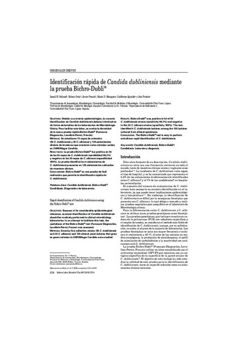 Para facilitar esta labor, se evalúa la idoneidad de la nueva prueba rápida Bichro-Dubli® (Fumouze Diagnostics, Levallois-Perret, Francia). La prueba Bichro-Dubli® utiliza un látex sensibilizado con el anticuerpo monoclonal 12F7-F2 que reacciona con un antígeno específico de la superficie de la pared celular de C. dubliniensis.