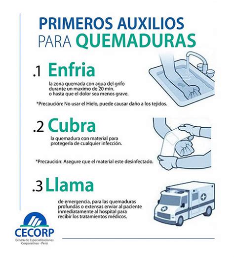 Como ante cualquier situación de riesgo, cuando sufrimos una quemadura o presenciamos un accidente de este tipo, es importante mantener la calma para actuar de la forma más rápida y eficiente posible. Ante una quemadura, lo primero que debemos hacer es intentar enfriar la zona con agua fría, aunque deberíamos evitar el agua helada. Posteriormente deberíamos cubrir la zona con una venda estéril o un vendaje limpio que no se pegue a la quemadura. Asimismo, deberemos proteger la zona para evitar cualquier tipo de golpe o rozadura. En función de la gravedad, puede ser necesario que la quemadura sea revisada por personal médico especializado, a ser posible un dermatólogo.