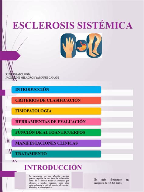 La esclerosis sistémica (escleroderma) es una enfermedad autoinmune del tejido conectivo de etiología desconocida. Se caracteriza por una significativa morbilidad y mortalidad debido a sus múltiples complicaciones cutáneas y sistémicas.