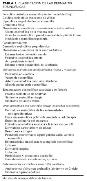 La dermatosis eosinofílica de la enfermedad hematológica maligna se caracteriza por eosinofilia tisular que surge en el contexto de una enfermedad hematológica. La malignidad asociada más común es la leucemia linfocítica crónica. Es una condición rara con una amplia variedad de presentaciones clínicas, que van desde pápulas, nódulos eritematosos o ampollas que simulan picaduras de artrópodos, hasta la formación de verdaderas placas de diferentes tamaños. La histología revela la presencia de abundantes eosinófilos.