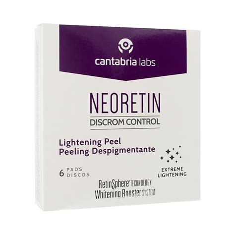 Neoretin Discrom Control Peeling Despigmentante son discos exfoliantes diseñados para tratar y prevenir las manchas en la piel, mejorando la textura y el tono. Con su uso regular, la piel se ve más luminosa, suave y uniforme. Estos discos contienen una combinación de ingredientes despigmentantes y exfoliantes que ayudan a eliminar las células muertas, renovar la piel y reducir la apariencia de manchas oscuras.