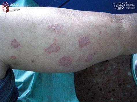 - Los síntomas incluyen: Parches redondos y escamosos en la piel que pueden picar, enrojecerse y resecarse.
