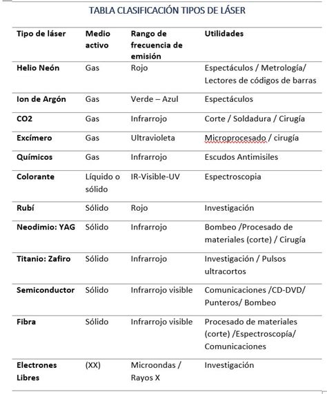 Tabla Resumen de Tipos de Láser y su Eficacia