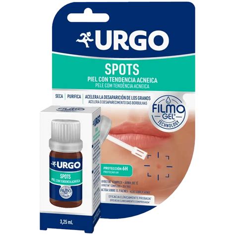 - Urgo Spots Filmogel®: Un tratamiento localizado antiacné que crea un film protector invisible que seca, purifica y acelera la desaparición del grano.