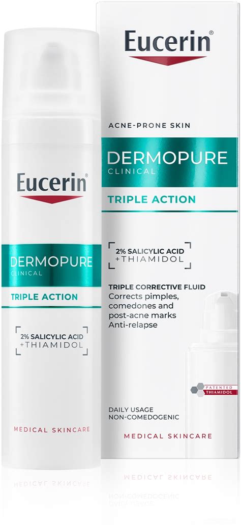 - DERMOPURE CLINICAL TRIPLE ACTION: a su triple efecto reduce las impurezas y previene su reaparición. Además, el ingrediente activo patentado, Thiamidol, asegura que las manchas residuales de los granos se atenúen con el uso regular y previene su formación. Con una tecnología reguladora de sebo, también se matifica el cutis y se regula la producción excesiva de sebo.