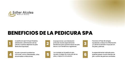 Los beneficios son muy similares a los de una pedicura regular, pero el spa o el entorno similar al spa pueden ayudarte a sentirte más relajado. Los beneficios que es probable que experimente incluyen un menor riesgo de infección por hongos y talones agrietados, piel más suave en los pies y circulación mejorada. Tus pies también quedarán con un aspecto y una sensación increíbles.