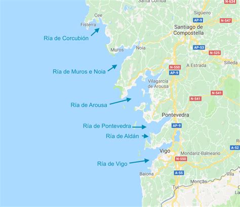 Mapa de las Rías Baixas en Galicia, un ecosistema vulnerable a la contaminación.