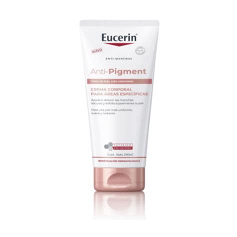 Eucerin Anti-Pigment Crema Corporal es una crema especializada formulada para reducir las manchas oscuras en la piel y exfoliarla suavemente. Su fórmula combina ingredientes activos que actúan de diversas formas para disminuir la hiperpigmentación y calmar la piel sensible.